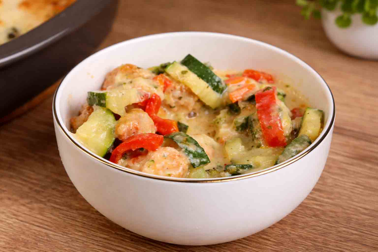 Du suchst ein gesundes Rezept, das schnell geht und allen schmeckt? Dann ist dieser Hähnchen-Gemüse-Auflauf aus dem Thermomix genau das Richtige. Zartes Hähnchen, viel Gemüse und eine cremige Sauce aus dem Mixtopf. Zum Schluss wird alles mit Mozzarella überbacken. Das Ergebnis ist echtes Soulfood aus dem Ofen. Perfekt für den Alltag, Meal Prep oder das Familienessen.