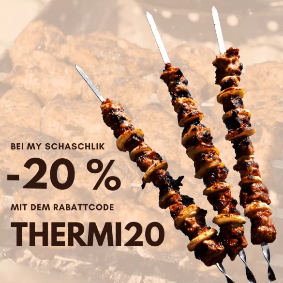 Ich habe fantastische Neuigkeiten für euch, die euer nächstes Grillfest unvergesslich machen werden! Als leidenschaftlicher Schaschlikfan habe ich mich mit My Schaschlik zusammengetan, um euch ein ganz besonderes Angebot zu präsentieren. Mit meinem Influencer-Gutscheincode THERMI20 könnt ihr jetzt bei eurer Bestellung ganze 20 % sparen und gleichzeitig in den Genuss von erstklassigem, traditionell zubereitetem Schaschlik kommen.