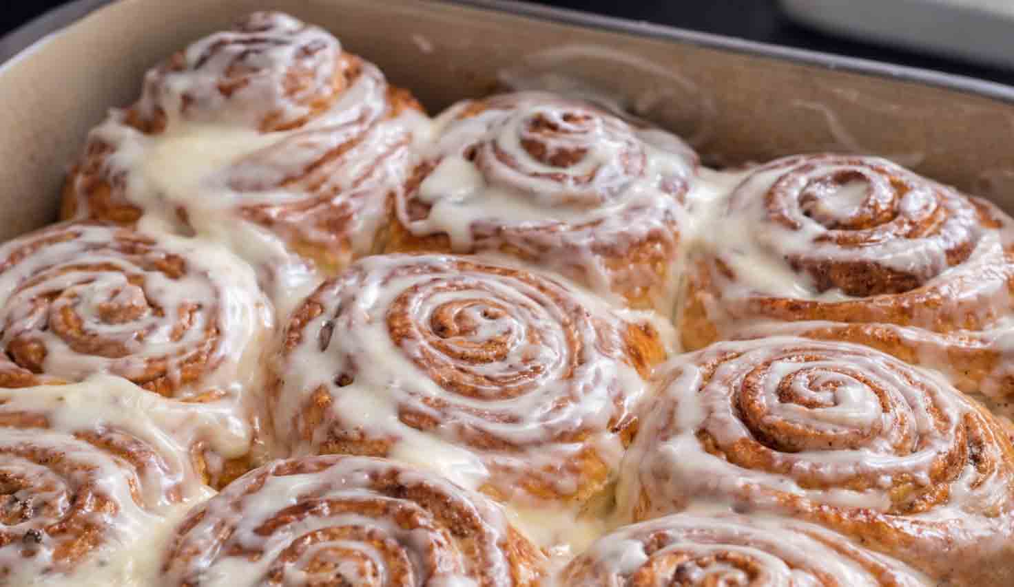 - Zimtschnecken ca. 5 Min. abkühlen lassen und mit der Frischkäse-Glasur bestreichen.